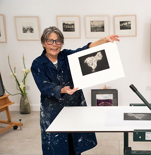 Bernie Dignam has lived in Connemara since the 1990s. During this time, she has developed a reputation as a professional artist and one of the most important art educators in the area. In addition to her work with several third-level institutions, she has engaged with all levels and abilities within her community. Having completed a degree in design from D.I.T. Bernie completed a further year of study at Limerick School of Art & Design. During this year she was introduced to various media where printmaking and textiles left an indelible mark on her. She has exhibited her work both nationally and internationally for the last two decades and her work is in many private collections worldwide.